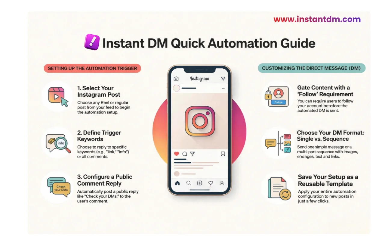 The easiest way is to use a compliant third-party tool like InstantDM to set up "Triggers." For example, you can create a rule where a specific keyword in your comments automatically sends a link to the user’s DM. You just connect your professional account to the tool, write your message script, and let the software handle the 24/7 responses while you focus on making content.